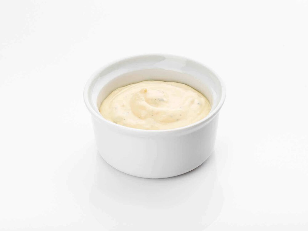 Авторский соус ручной работы по рецепту шеф-повара. Нежная кремовая текстура, сбалансированное сочетание лёгкой пикантности, чесночных нот и тонкого сырного акцента. Идеально подходит к салатам, закускам и блюдам из курицы.