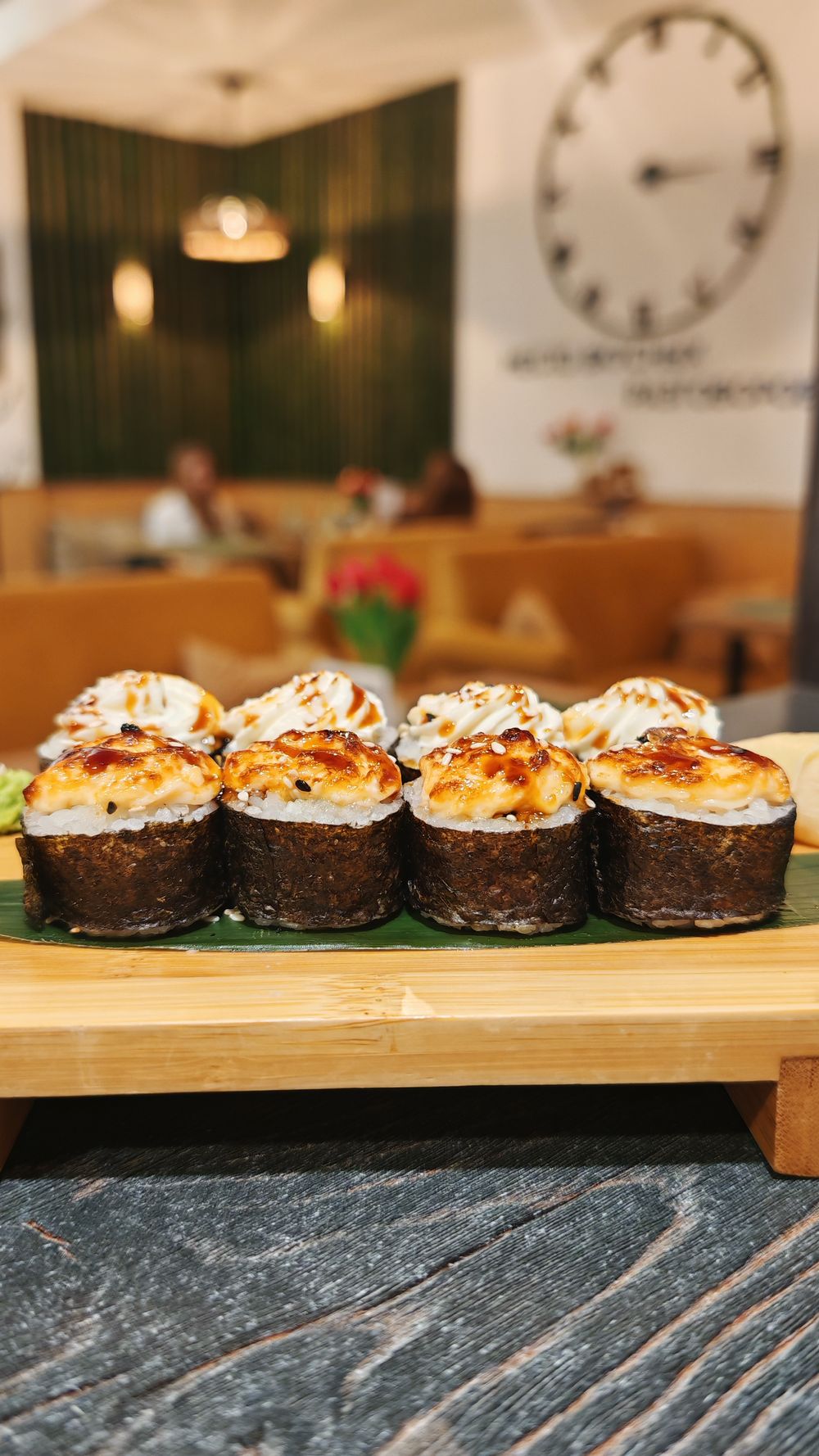 Запеченный ролл с лососем и сыром моцарелла